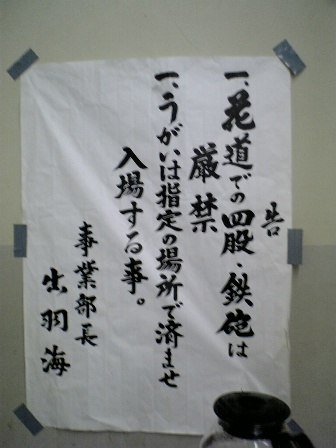 部屋に貼ってあった張り紙。みんなソデで四股を踏まないように!