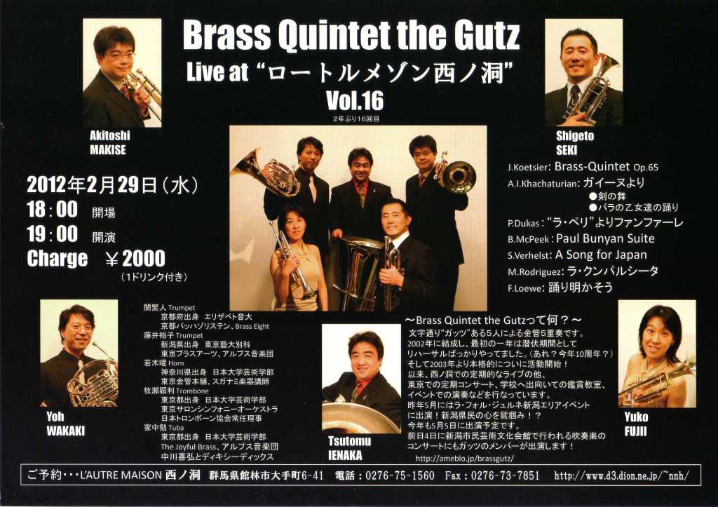 ひさびさに群馬県は館林市のライブハウス”西ノ洞”に行ってきた。出演はBrass Quintet The Gutz。